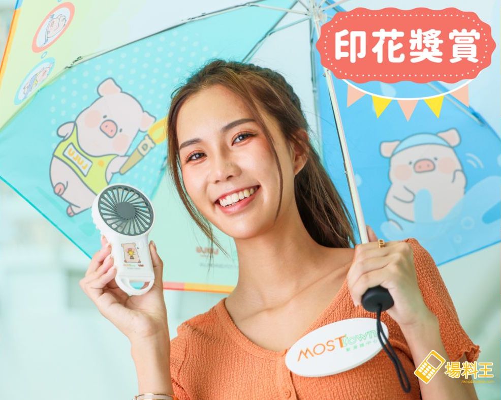 於即日至 8 月 25 日期間,H.COINS 會員可參加「MOST-OLYMPIGS 金牌運動『豚』」印花獎賞,於 MOSTown 新港城中心以電子貨幣單一消費滿 $400 或以上,即可獲得專屬指定電子印花 1 枚,集齊 3 枚專屬電子印花,即可免費換領「MOSTown x LuLu 豬 21 吋縮骨遮」或「MOSTown x LuLu 豬迷你便攜兩用電風扇」 (下圖),換完即止,陪大家共度涼快夏日!