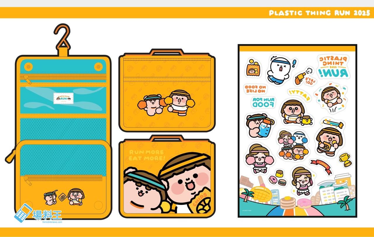 大會為今次活動特別推出 Plastic Thing 限量產品給參賽者額外選購,包括為食妹食唔停磁石膊頭公仔、多用途收納袋(下圖左)、Plastic Thing T-shirt、為食妹運動帽及人氣紋身貼紙(下圖右),實在不容錯過。