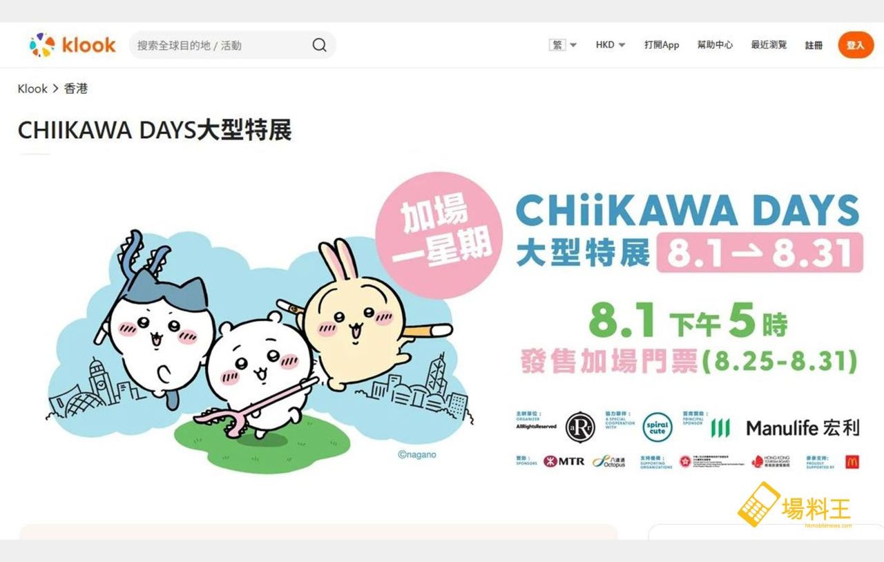 全城期待的大型吉伊卡哇主題展覽「CHIIKAWA DAYS」大型特展於 8 月 1 日正式登陸香港!展覽位於尖沙咀 K11 MUSEA 暨海濱,設有 3 個收費展區,分別位於 K11 MUSEA 地下室內 MUSE EDITION、地下戶外 Promenade、及 6 樓雕塑公園;另還有快閃店及鄰近的港鐵尖東站亦化身為主題車站,相信必令一眾粉絲們興奮不已。