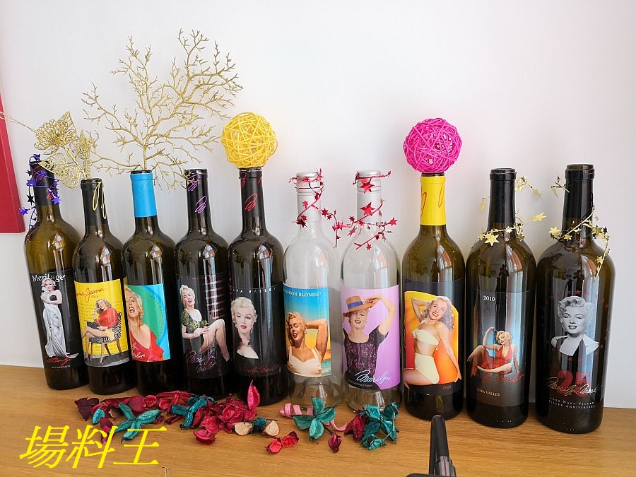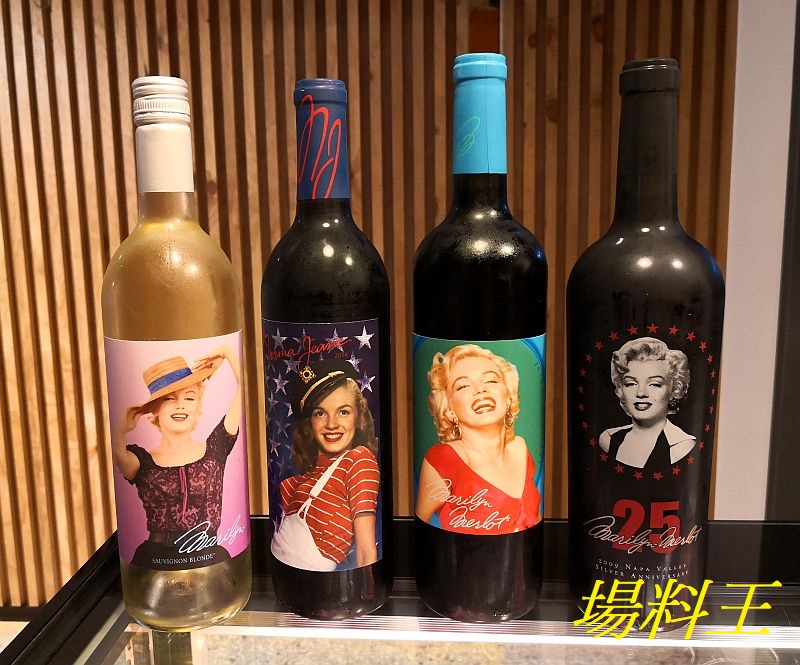 在主題房內還展示了多支印有以「瑪麗蓮夢露」為主題的酒瓶,原來那是由美國加州的 Nova Wines 酒廠,於自 1998 年起特別以「瑪麗蓮夢露」作主題而釀製的一系列「瑪麗蓮夢露葡萄酒 (Marilyn Wines)」,而這系列的葡萄酒更以瑪麗蓮夢露成名前的名字「諾瑪金梅洛 (Norma Jeane)」而命名。