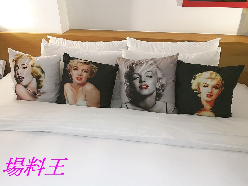 甫進房間,最搶眼的當然是雙人床上幾個場印有瑪麗蓮夢露畫像的小攬枕,如果抱著入眠,或可跟佳人夢中相見也說不定呢!