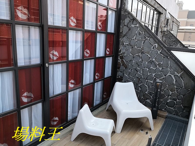 瑪麗蓮夢露主題房附設小露台,如在貼滿紅唇貼紙的露台看星,可會增加浪漫感覺?