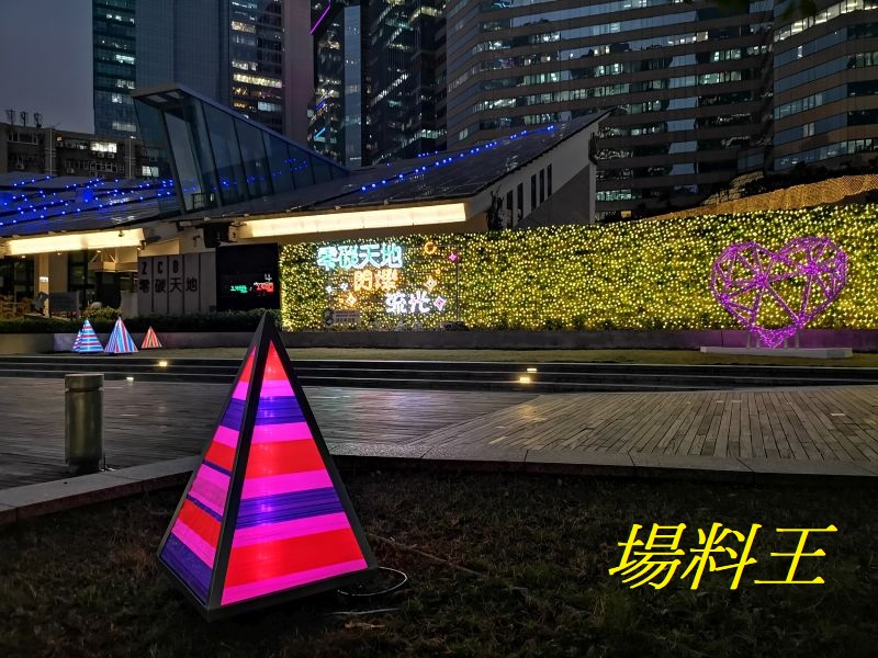 園區內則用上閃閃燈光作賣點,添置了多顆金光閃閃的三角錐體聖誕樹,營造聖誕樹海的感覺。