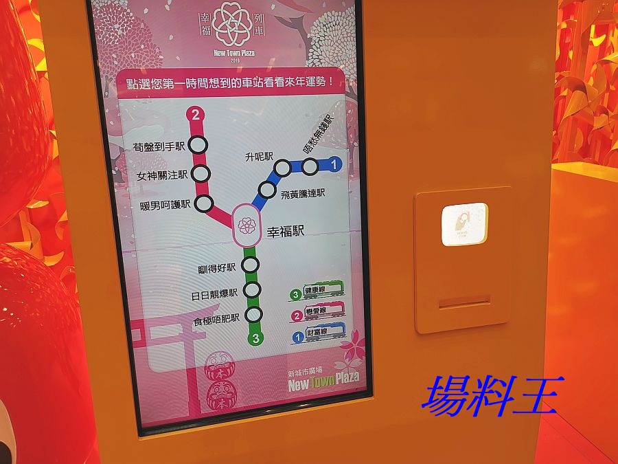 大家只需在特設的幸福售票機點選 3 大路線圖:「健康線」、「戀愛線」及「財富線」,以取下附帶逗趣祝福語的「長期幸福車票」,順道預測來年運程。
