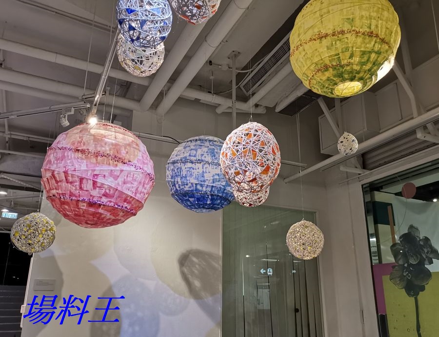 棉繩與玻璃物料 crossover 變身成為吊燈,新鮮的物料組合配合巧手編織,營造出一個清新的空間,且玻璃球在燈光折射下於牆上還可見到不同的色彩投影。