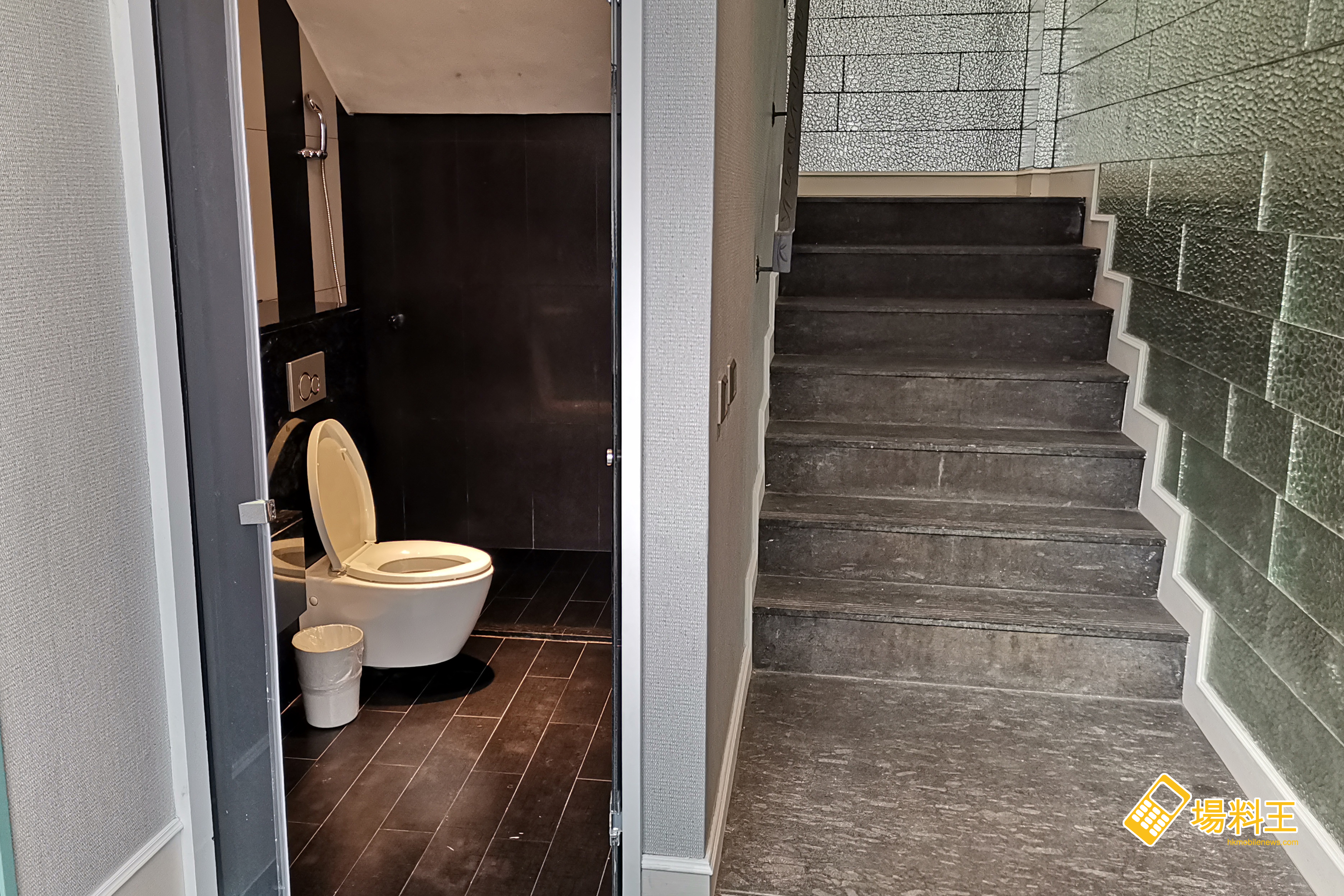甫出電梯後,大家可見到「驚艷巴洛克」房間的左邊是客廁及通往客房的樓梯,而直望是 KTV 房,右邊即可看到半開揚設計的滑水梯。大家只要拾級而上,即可到約高 3 米的滑水梯,據負責人稱,原來滑水梯現已經過改動,而原來的滑水梯上落處是必須要經過裡面的樓梯,但令玩水的大小朋友不方便外,更會弄至滿地濕滑,更易生危險,因而才作出現時的改動,,而玩完水的賓客亦可直接在旁邊的廁所內沐浴更衣,設計確是貼心。