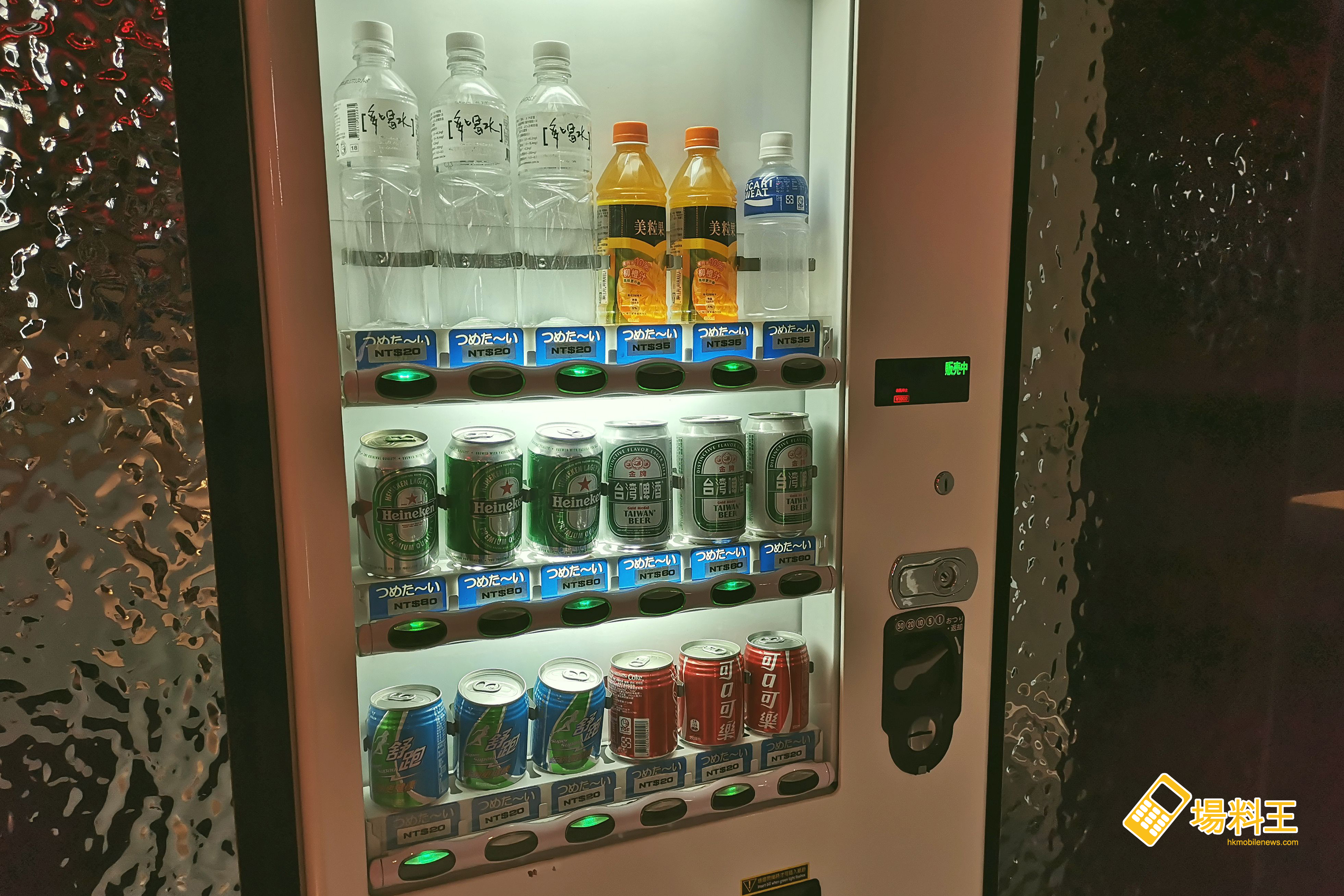 較特別的,是在 KTV 房內設有一部飲品自助售賣機,可提供啤酒、橙汁、電解礦物水、可樂等。
