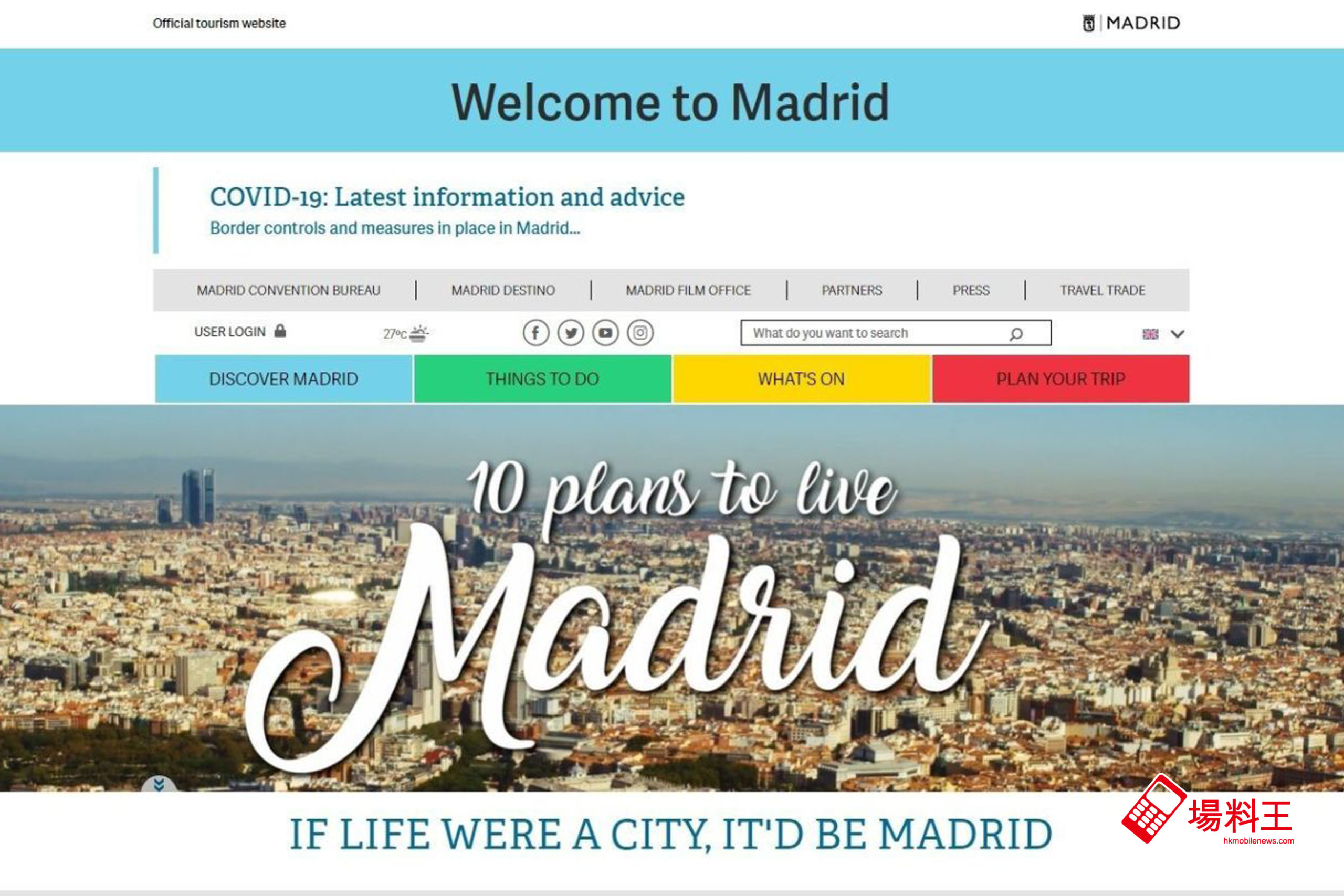 西班牙首都馬德里推出了全新國際性的旅遊宣傳活動,其旅遊網站經重新編寫,支援包括簡體中文的 9 國語言,並利用大量圖像及影片向國際旅客推介在馬德里的深度旅遊。馬德里市議會旅遊部門期望可以分享馬德里旅遊的新定位,可以把馬里德的優質及可持續的旅遊,能在世界旅遊目的地保持著領導的地位,並藉悔帶動旅遊業的復甦,及促進行業發展。