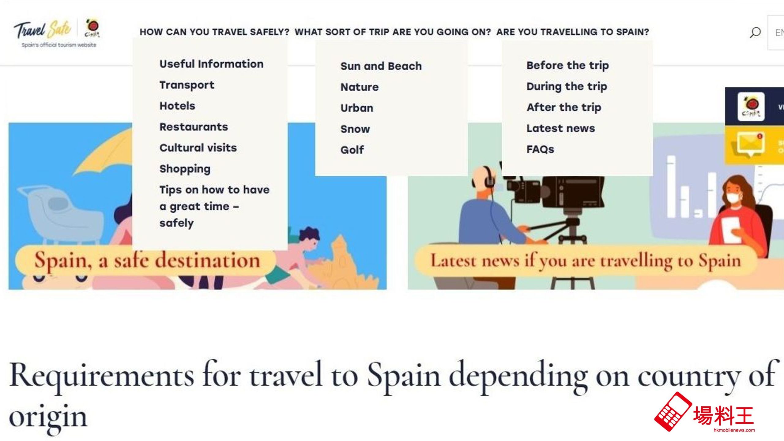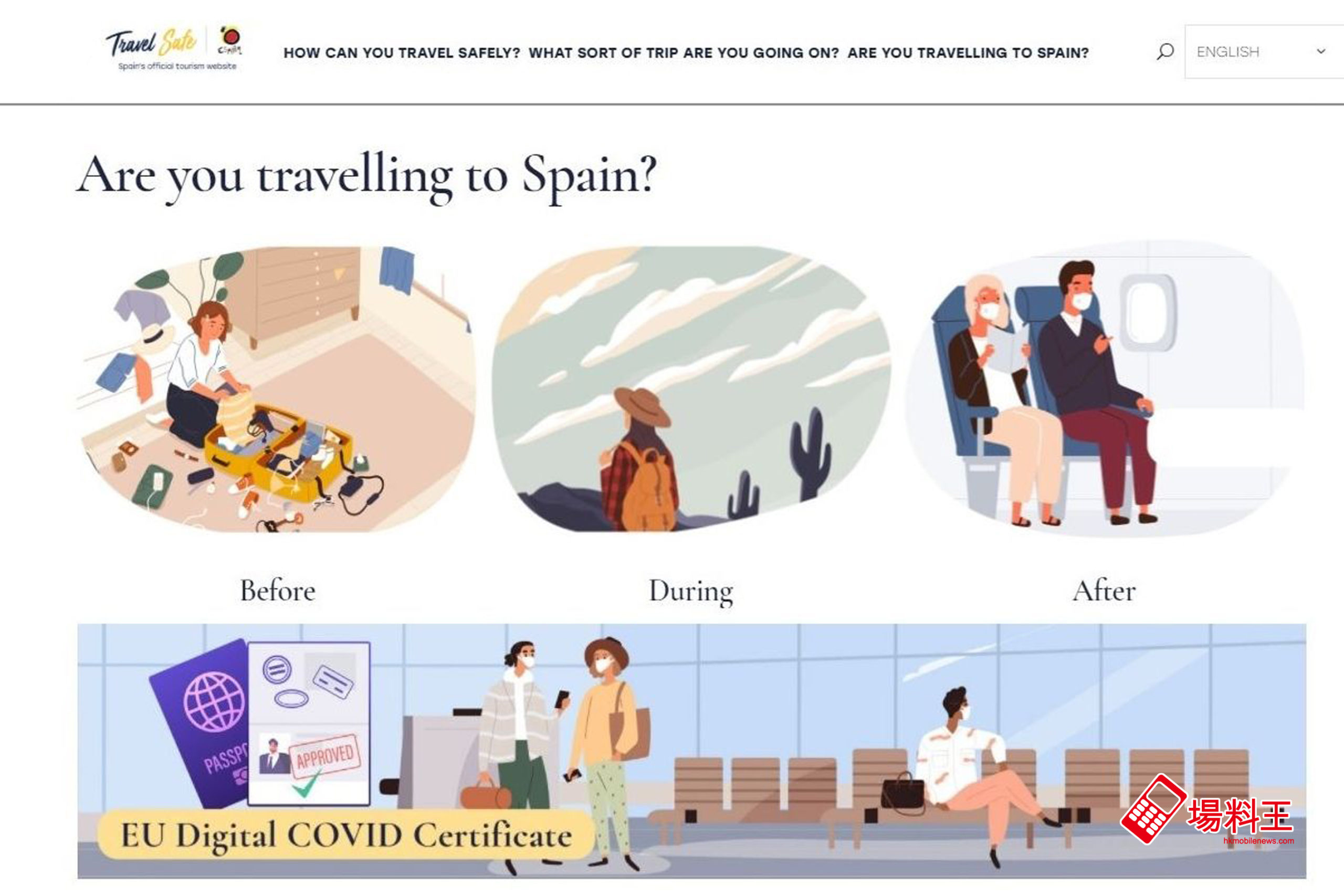 現時西班牙政府已重啟歐美人士到訪旅遊,故為使全球旅客能更方便安排行程,西班牙國家旅遊局推出了全新的 Travel Safe 網站,旅客可在網站內找到所有出發前、到訪西班牙期間,以及回程時的所有旅遊資訊。