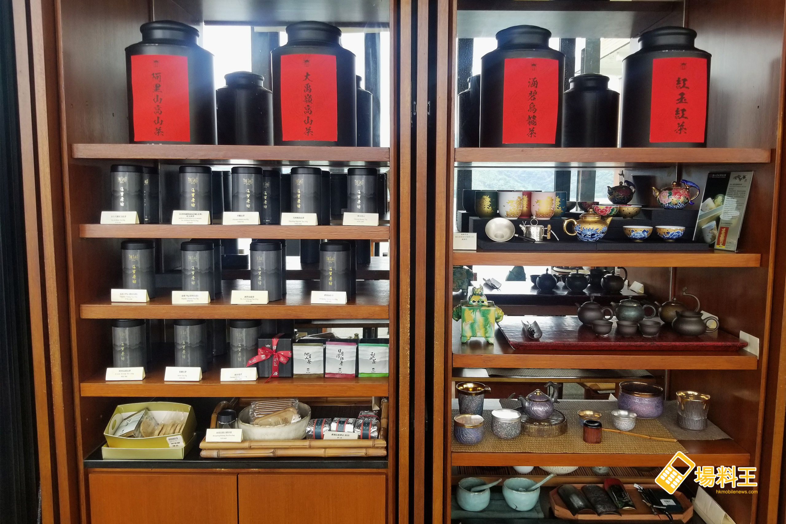 在水池的另一邊,設有酒店附設的茶區精品店「涵碧茶坊」,放有多款精品茶葉及茶具。