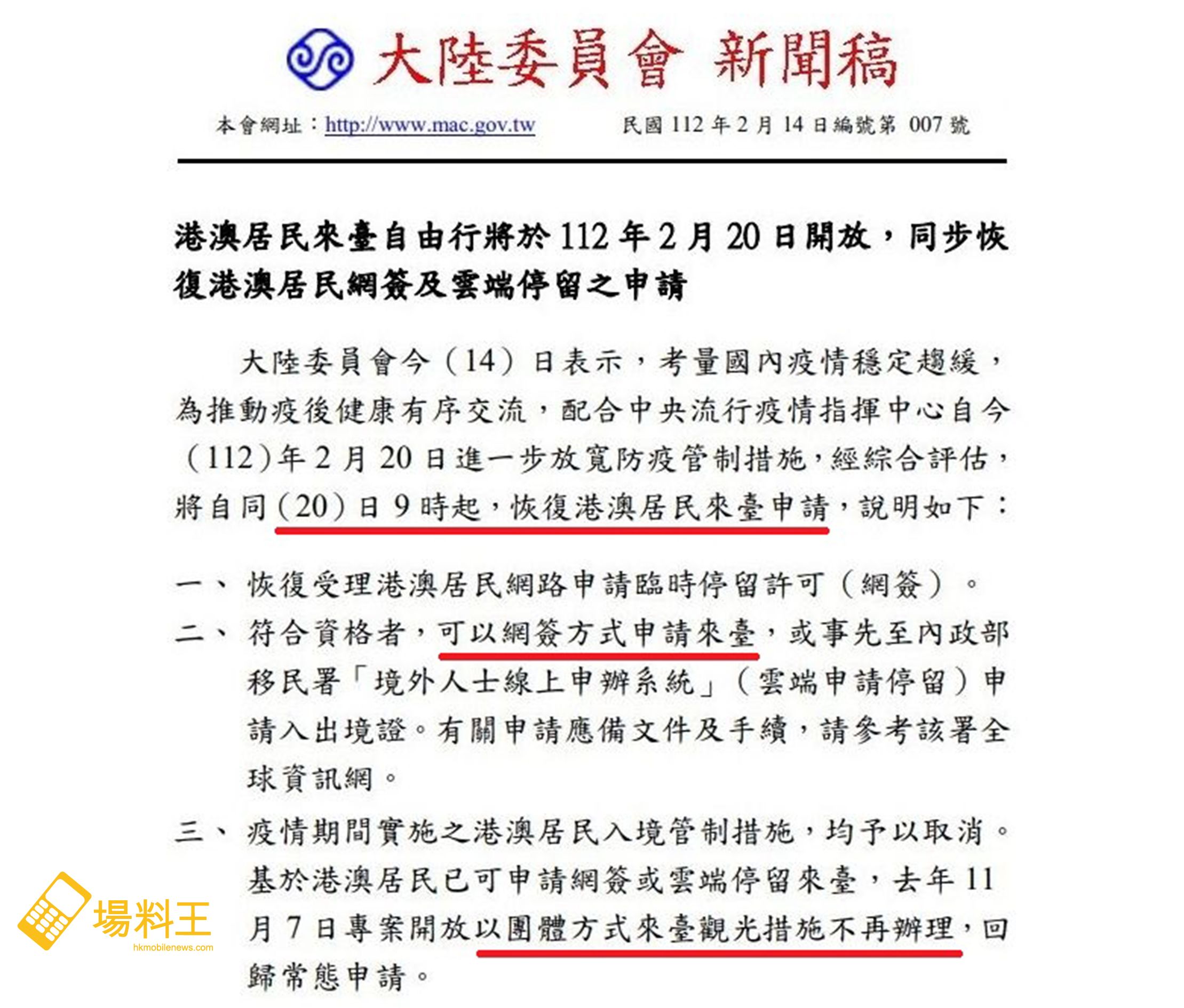 查詢:台北經濟文化辦事處 (http://www.tecos.org.hk)