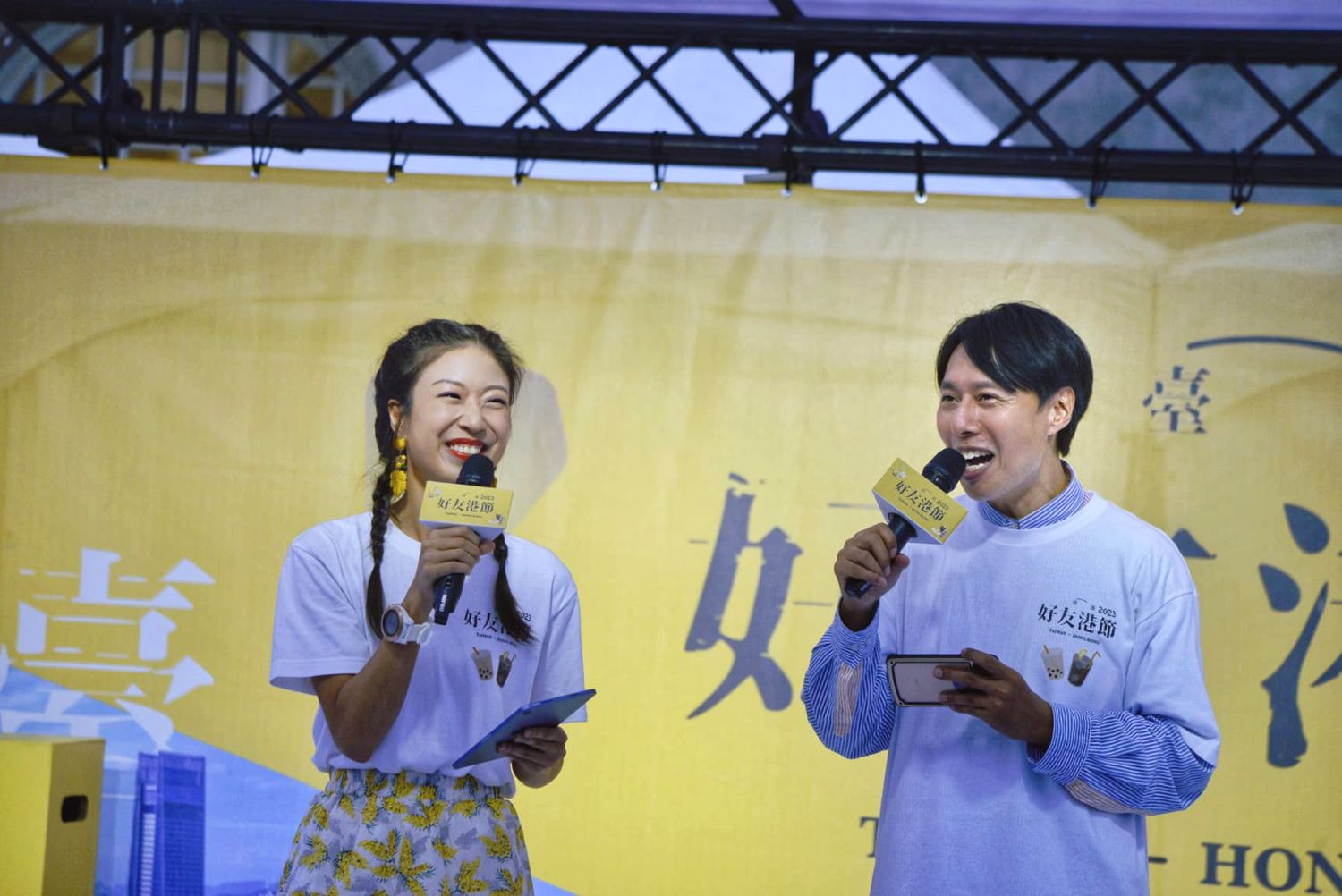 活動更邀得熟知當地文化的居台香港藝人張啟樂 (下圖右) 及鄧詠雪 (下圖左) 擔任主持人,更能提升現場氣氛。另張啟樂更是今次活動的協辦人,他也希望透過是次活動,讓香港人更了解台灣的同時,也讓台灣人更了解香港文化,並笑說今次是他來台三年以來聽到最多廣東話的熱鬧場景。至於鄧詠雪也表示能夠跟台灣朋友們分享到香港的多款地道小食,甚感開心,並希望活動能助在台香港人更能融入台灣社會。