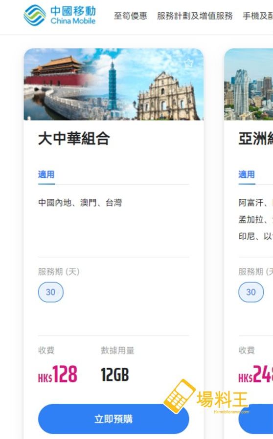 3. 大中華組合:全速數據用量額外送 4GB