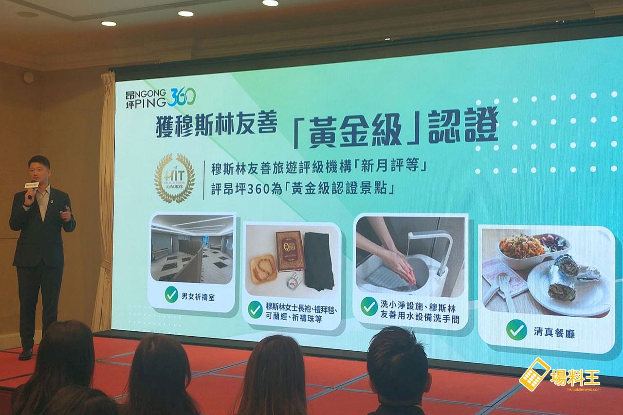 去年 9 月,昂坪 360 獲穆斯林友善旅遊評級機構「新月評等」評為「黃金級認證景點」。顧及穆斯林賓客的需求,我們在昂坪市集設男女祈禱室,附以穆斯林女士長袍、禮拜毯、可蘭經、祈禱珠等用品以供使用,並設有洗小淨設施及穆斯林友善用水設備的洗手間,以完善穆斯林賓客的旅遊體驗。